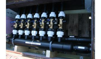 På TUR ut til brønn / kollektor sitter det stengeventiler for individuell gjennompumping, testing og lufting av hver kurs. (Serviceventil)