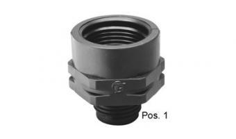 Utvendig nippel (tipp "Pos. 1") til innvendig muffe. Gjenge forstørring.